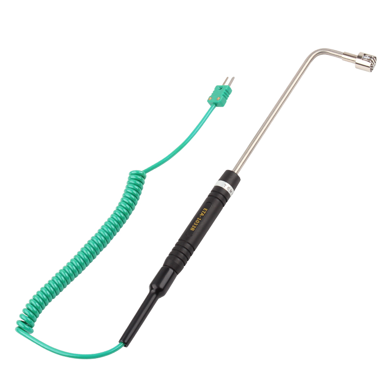 ETA1031B表面式溫度測棒適用于測量固定的物體表面,測溫端90度直角設計,方便特殊測量使用。 例如應用于鋁或塑膠模具、紡織品、PC板、紙製品及鋼板壓鑄后的表面溫度等。