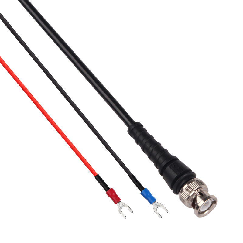 BNC轉Y型端子線,適用于輸入或輸出信號的測試,采用高質量RG58/50Ω硅膠同軸線纜,高級結構同軸線傳輸性能好、耗損低、信號穩定