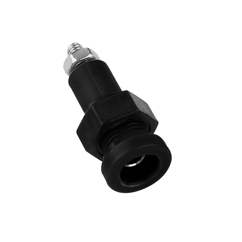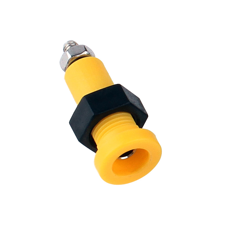 純銅鍍鎳嵌入式3mm輸入端子,采用螺帽直接在面板進行固定,耐高溫尼龍塑料,尾端可使用冷壓端子連接。
